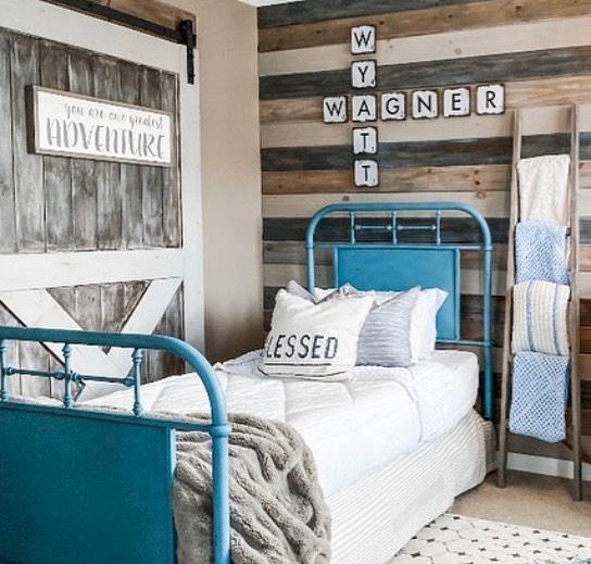 This room proves that the scope can be chic. The room designed by Tracie Butler Design in West Hollywood, California has many features that keep children busy. The dark blue walls and the rustic wooden floor make the room look more sophisticated than youthful.
