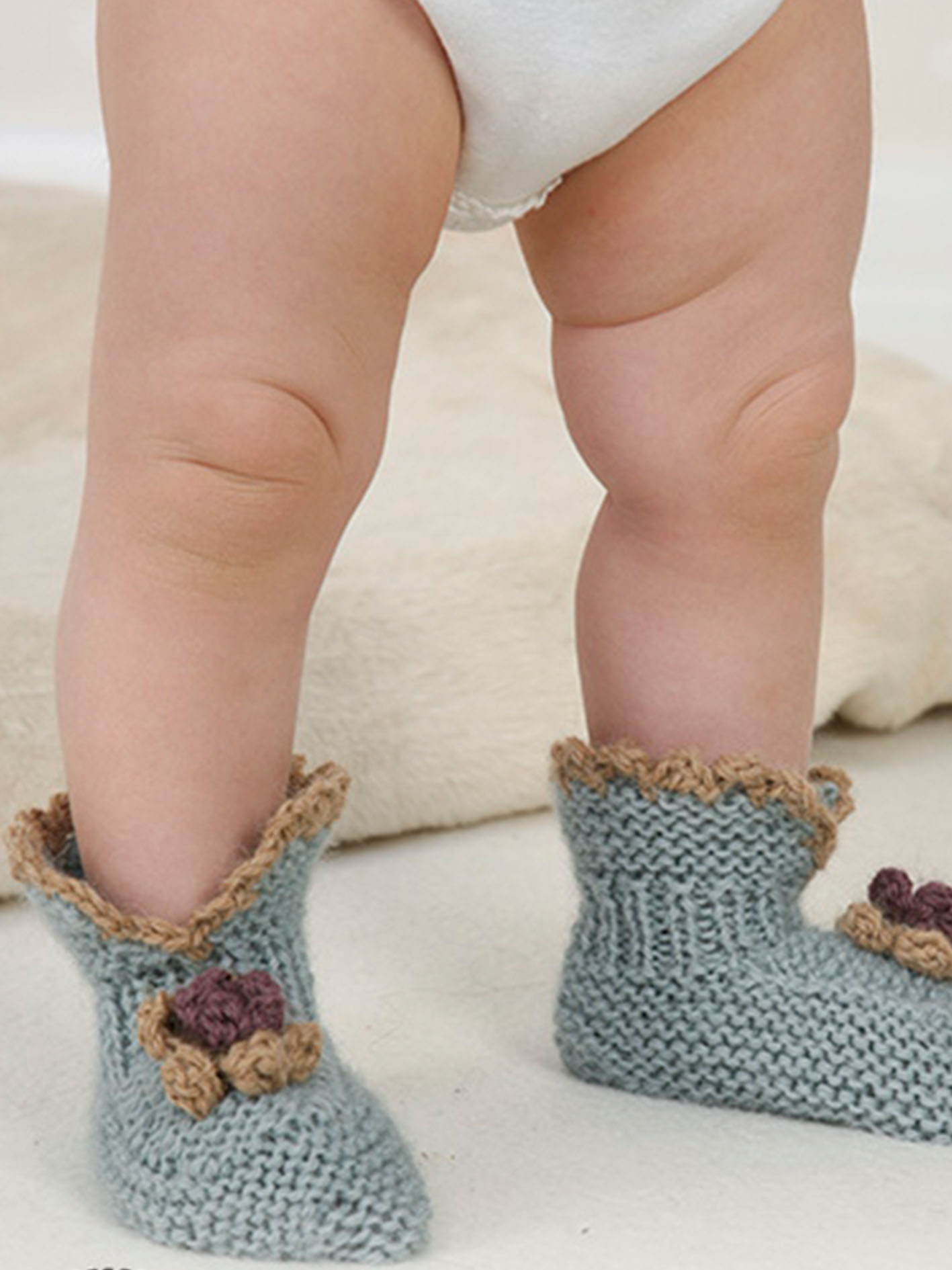 + a remnant of color no 0302, camel and no 3800, heather (for crochet border and flower)