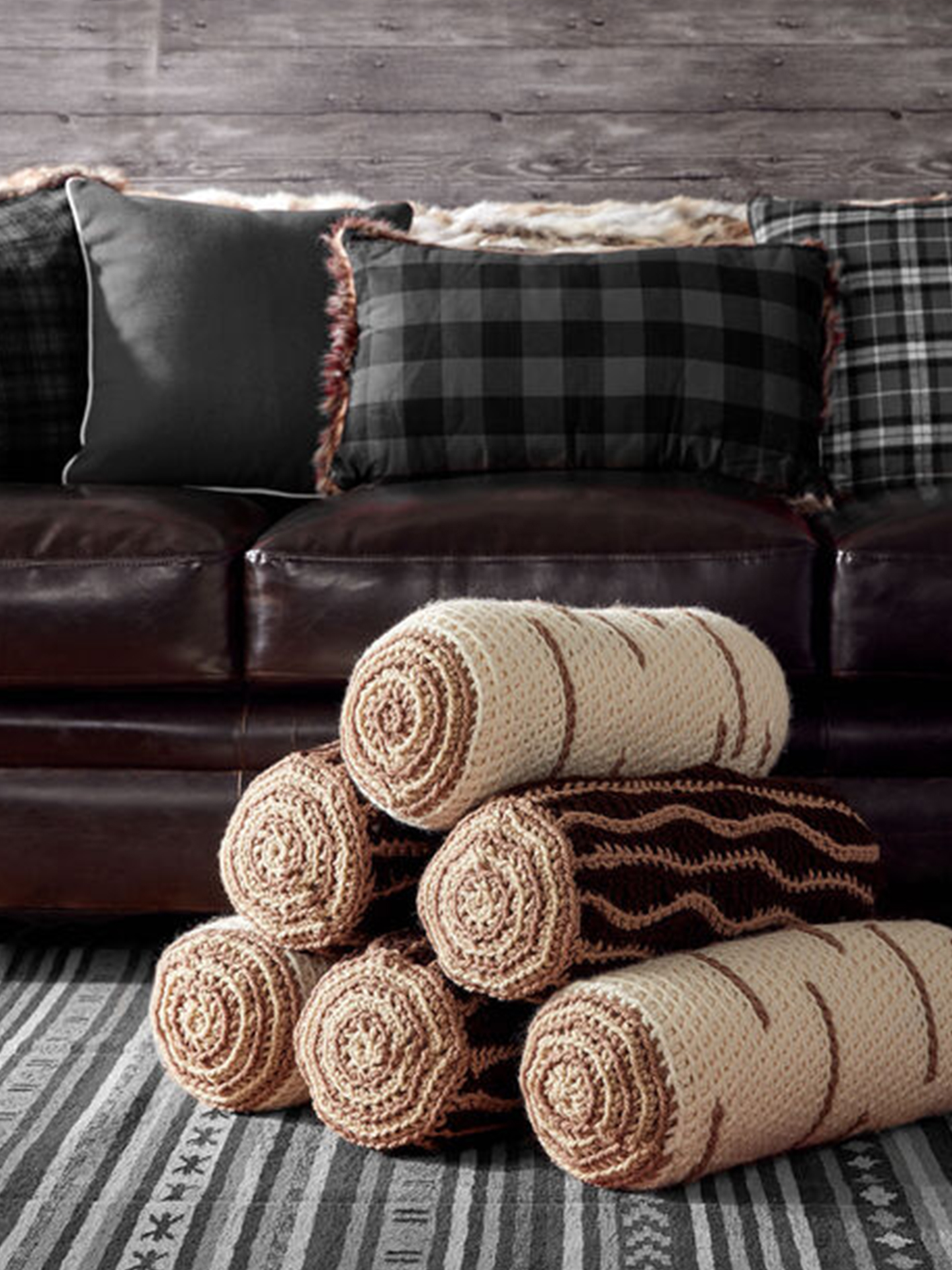 If you have a passion for the great outdoors, these handmade accent pieces easily find a place in your home. Crochet rustic looking pillows with excellent stitch definition, thanks to Bernat Softee Chunky and your creative touch. Choose Oak or Birch version to complete the ideal bolster for any sofa.