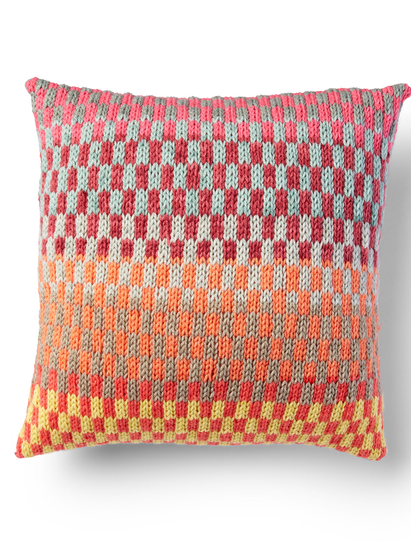 This free knitting pattern features a simple colorwork design with a graphic punch thanks to Bernat Pop! yarn. It’s perfect for practicing your fair isle knitting, and makes for a cozy home décor accent piece, too!