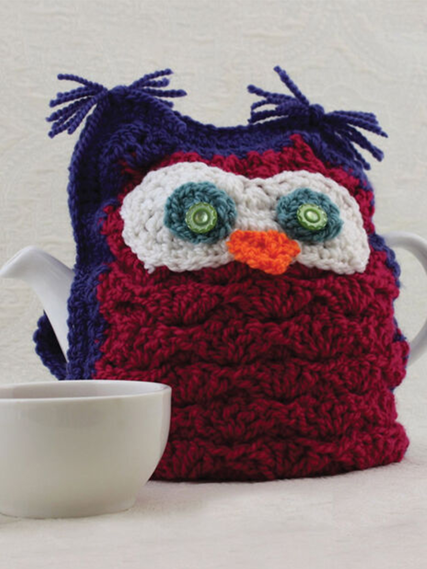Using a series of double crochets, create this adorable owl tea cozy – complete with tufted ears! Shape a creative piece in any hues that spark your imagination from Patons Shetland Chunky, or try it as shown. The pattern comes in 2 different owly shade combos for your complete crocheting enjoyment.