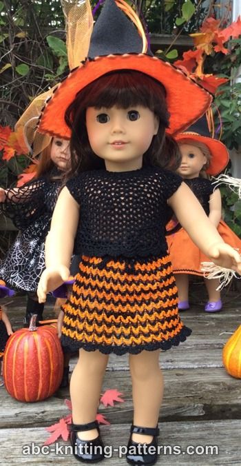 My dolls are dressing up like witches for Halloween this year (yes, all of them!). This crochet skirt and blouse is for the modern witch who needs to get things done in style but doesn’t have time to dress up. traditional dresses and spider webs.