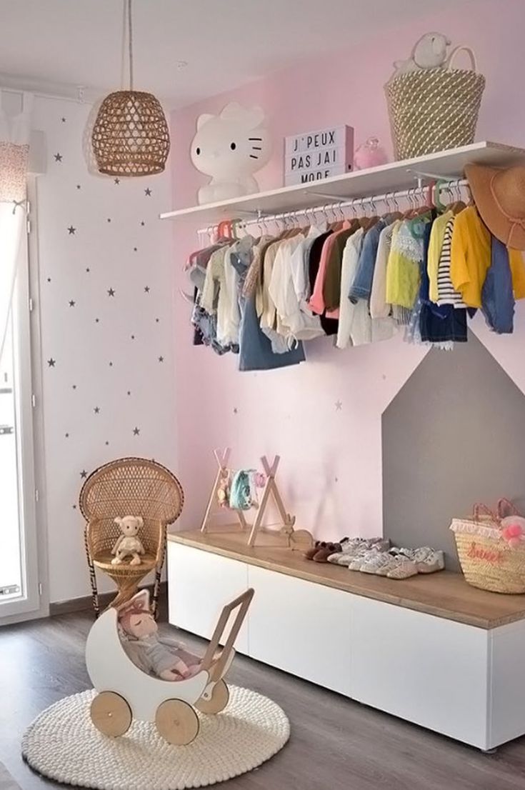 Fashionable color combinations in nursery design for girls.