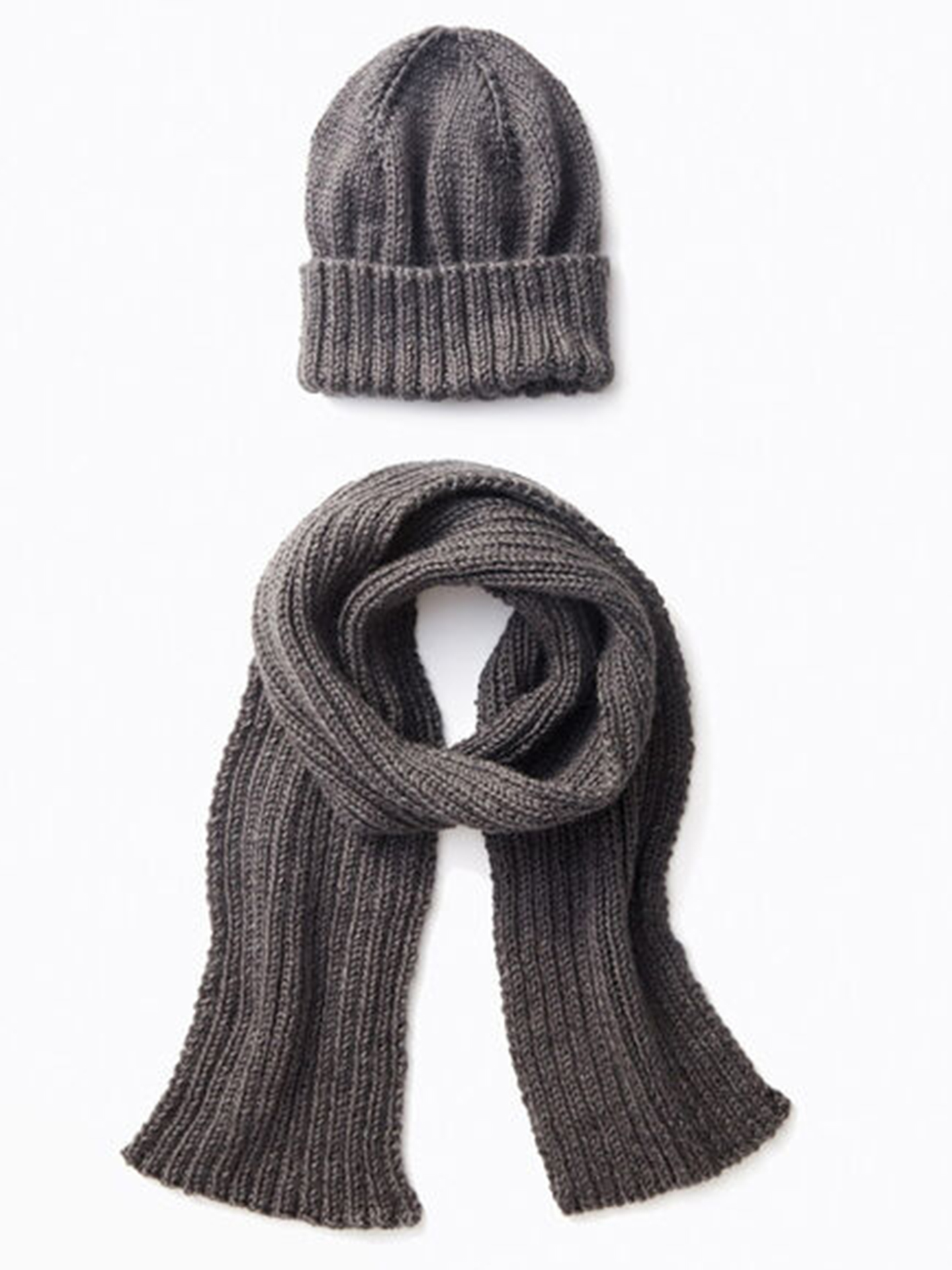 MEN’S BASIC HAT AND SCARF KNIT SET, HAT