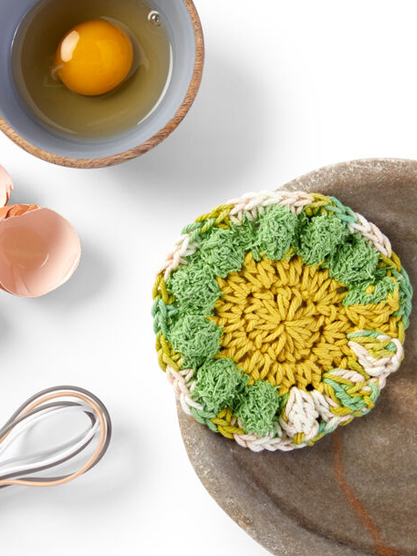 Those hard to reach spots are no match for this little scrubber! Featuring hard working popcorn stitches that provide extra cleaning power, this scrubber is made using single, half double, and double crochet stitches. Lily Sugar’n Cream Scrub Off has alternating sections of scouring texture making it ideal for this project. Plus, it’s the same 100% cotton yarn you know and love from Lily Sugar’n Cream.