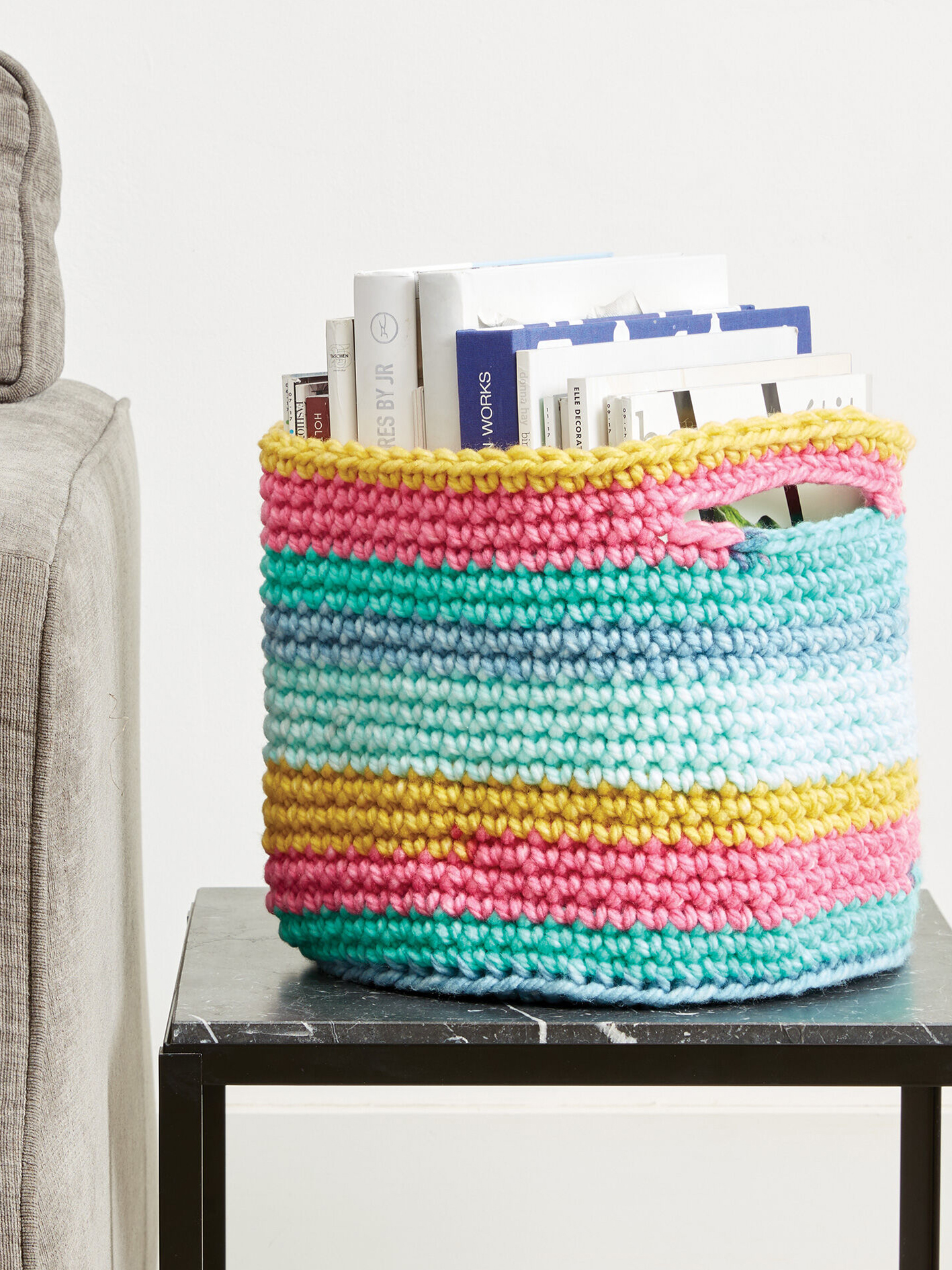 A crocheted basket is a versatile home décor project to make. Worked up in a chunky, self-striping yarn like Bernat Pop! Bulky creates a beautiful structured basket for your home.