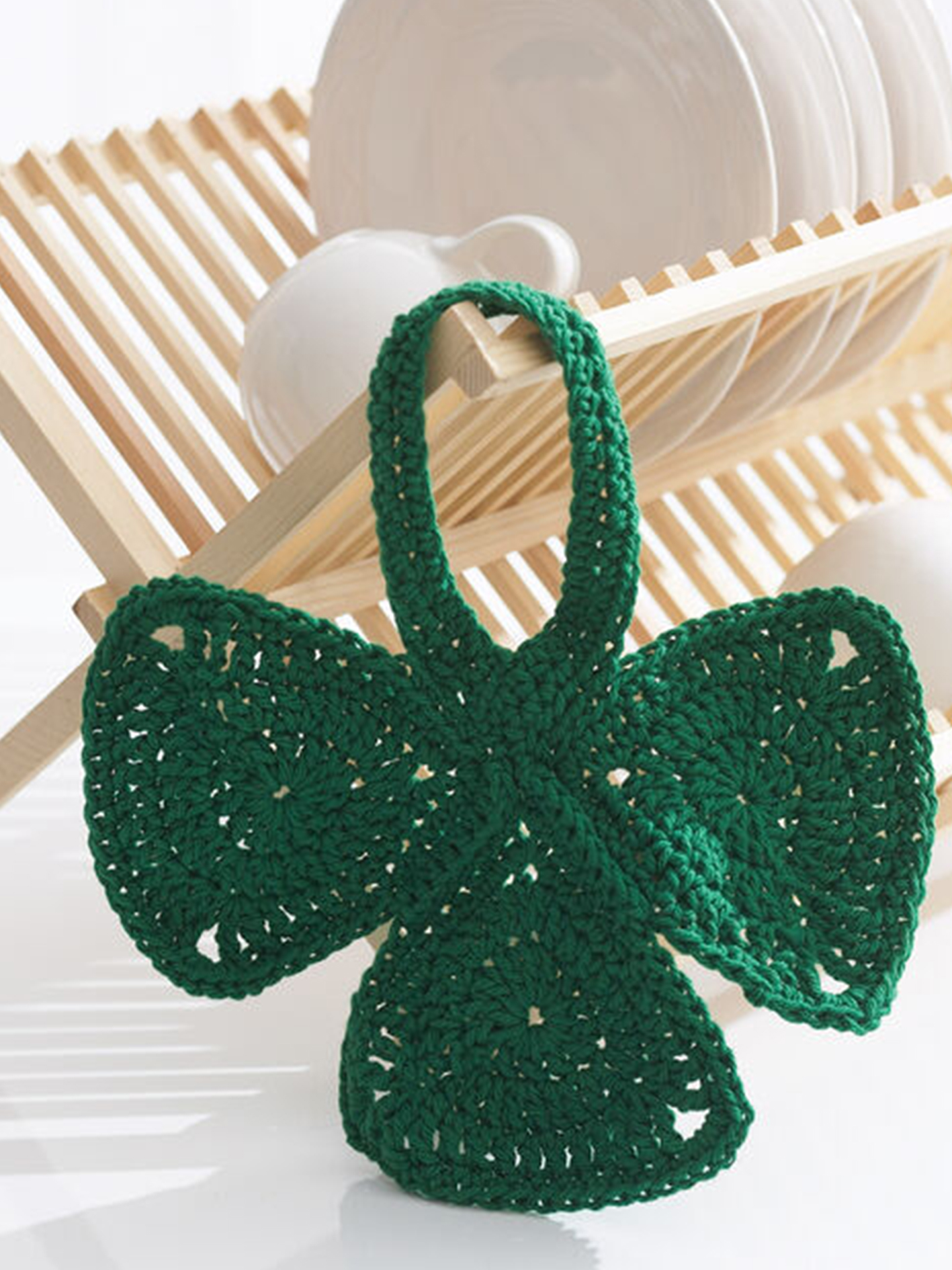 You don’t have to be Irish to appreciate the simplicity of a little dishcloth with a lot of heart. Made using durable Lily Sugar’n Cream, this piece works hard and looks perfect in Dark Pine, or crochet it in a non-traditional shade that reflects your tastes. May you enjoy the luck of the Irish with every kitchen clean-up!