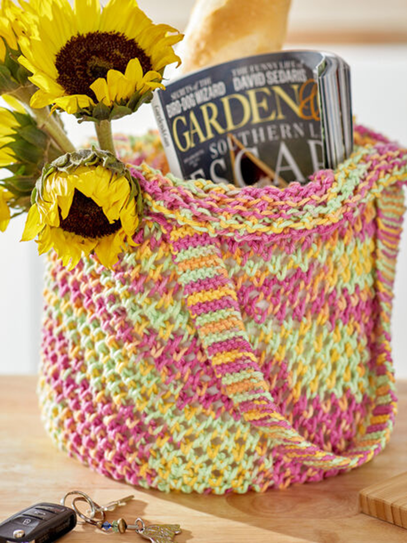 Whether heading out to the farmer’s market, packing a lunch or taking along your favorite books, this knit bag will be ready to carry everything you need for the day. Choose from a great array of colors in our cotton, Red Heart Scrubby Smoothie yarn. For the delicious version shown, use 3 balls of Popsicle Brights. It’s functional, beautiful and a inspired spring or summertime project!