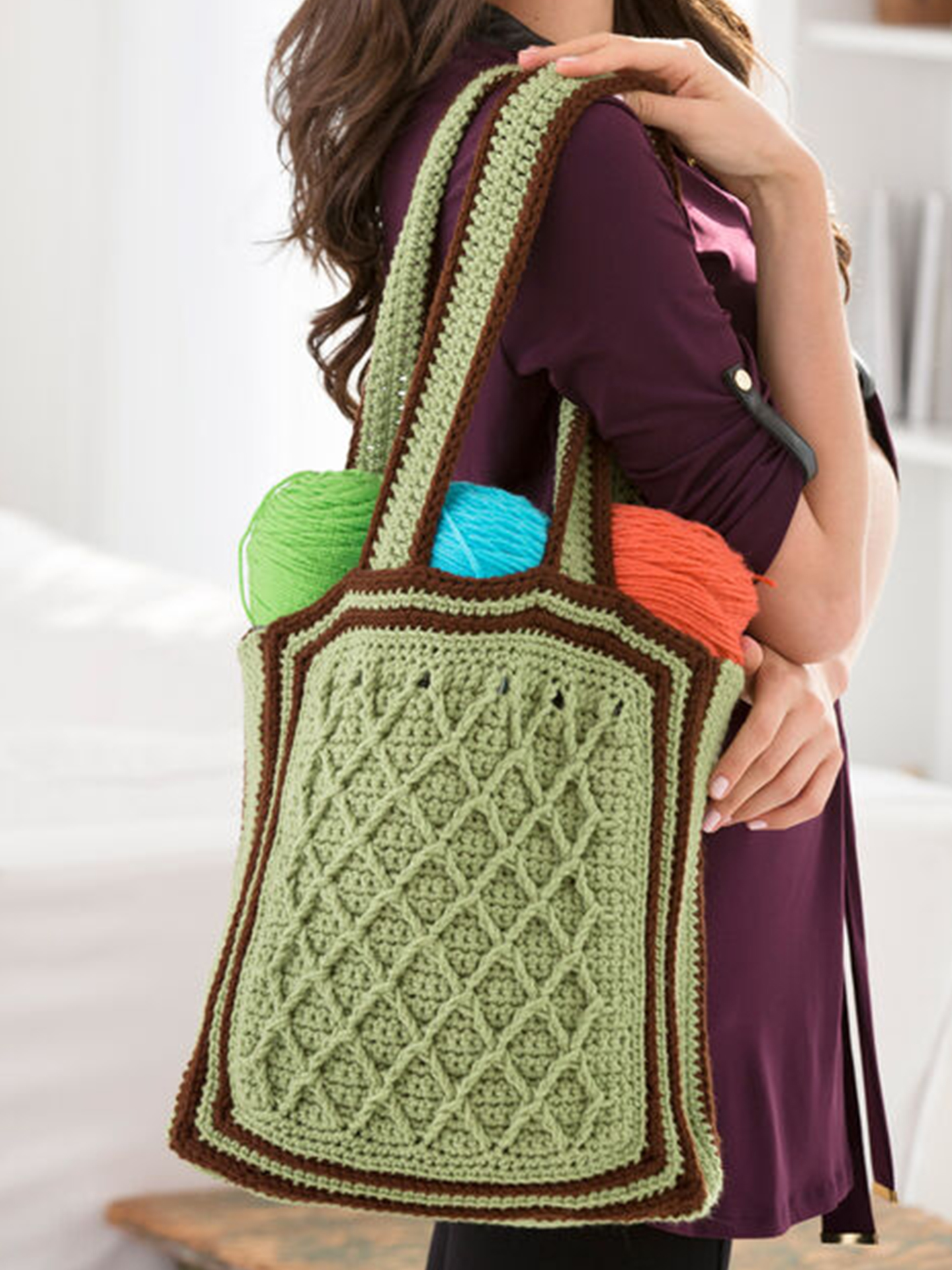 You’ll love using this bag for crochet projects or toting along other necessities! Enjoy watching the lattice pattern appear as you do the textured post stitches.
