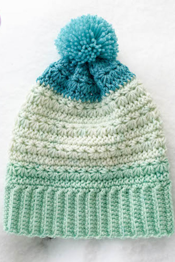 Snow Drops Slouch Hat works with a stunning texture and uses less than a Caron Cakes thread. Of course, you can also use your preferred combed weight yarn. This free crochet pattern was designed to match my popular Snow Drops Mod scarf. There’s even a left- and right-handed video tutorial to teach you how to star stitch on the go. This pattern also requires a 5.0mm crochet hook and optional pom pom maker.