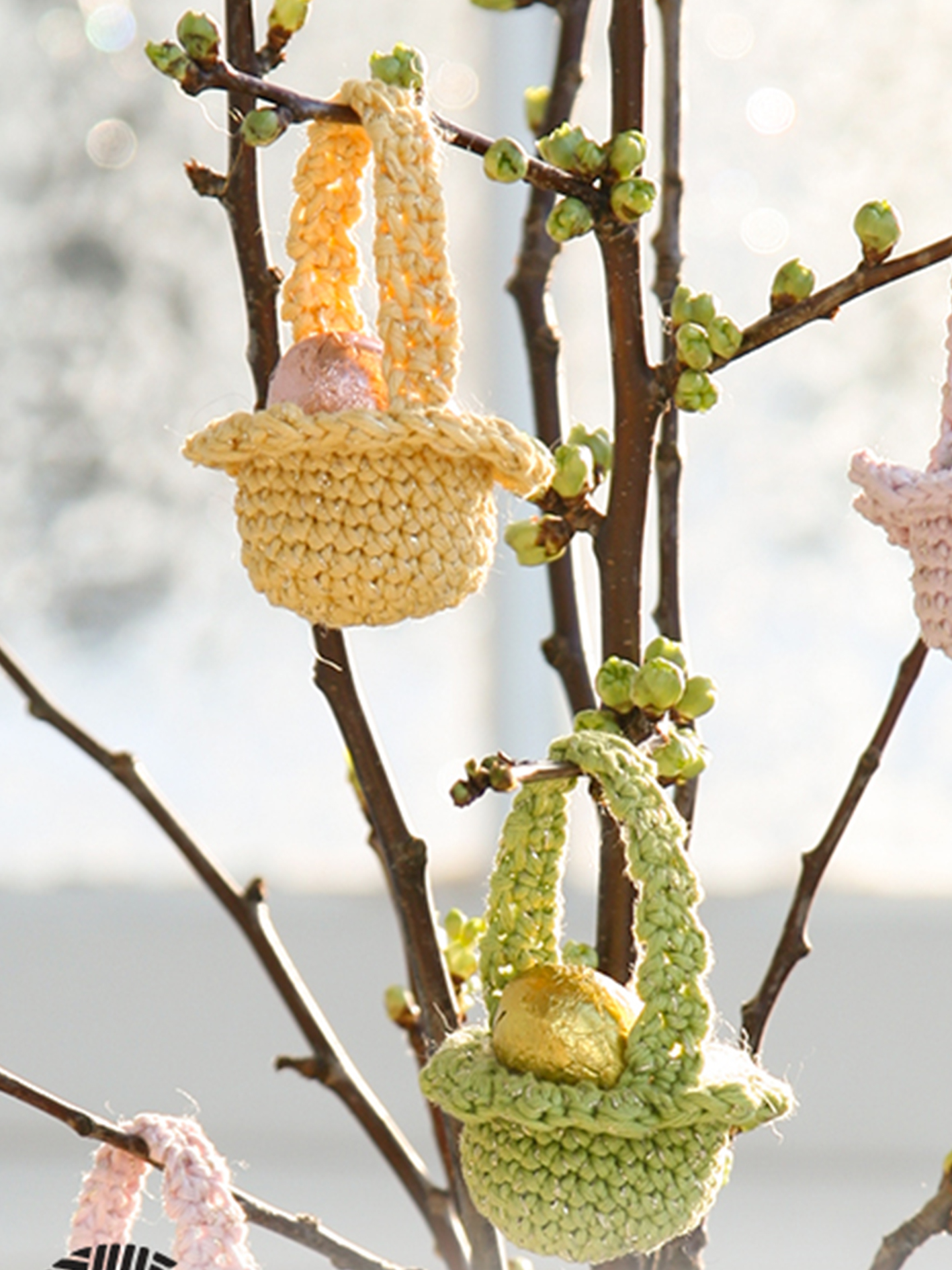 DROPS Crochet hook size 3 mm [US C] – or the size needed to obtain 22 sc x 24 rounds with 1 thread Muskat and 2 threads Glitter = 4” x 4”