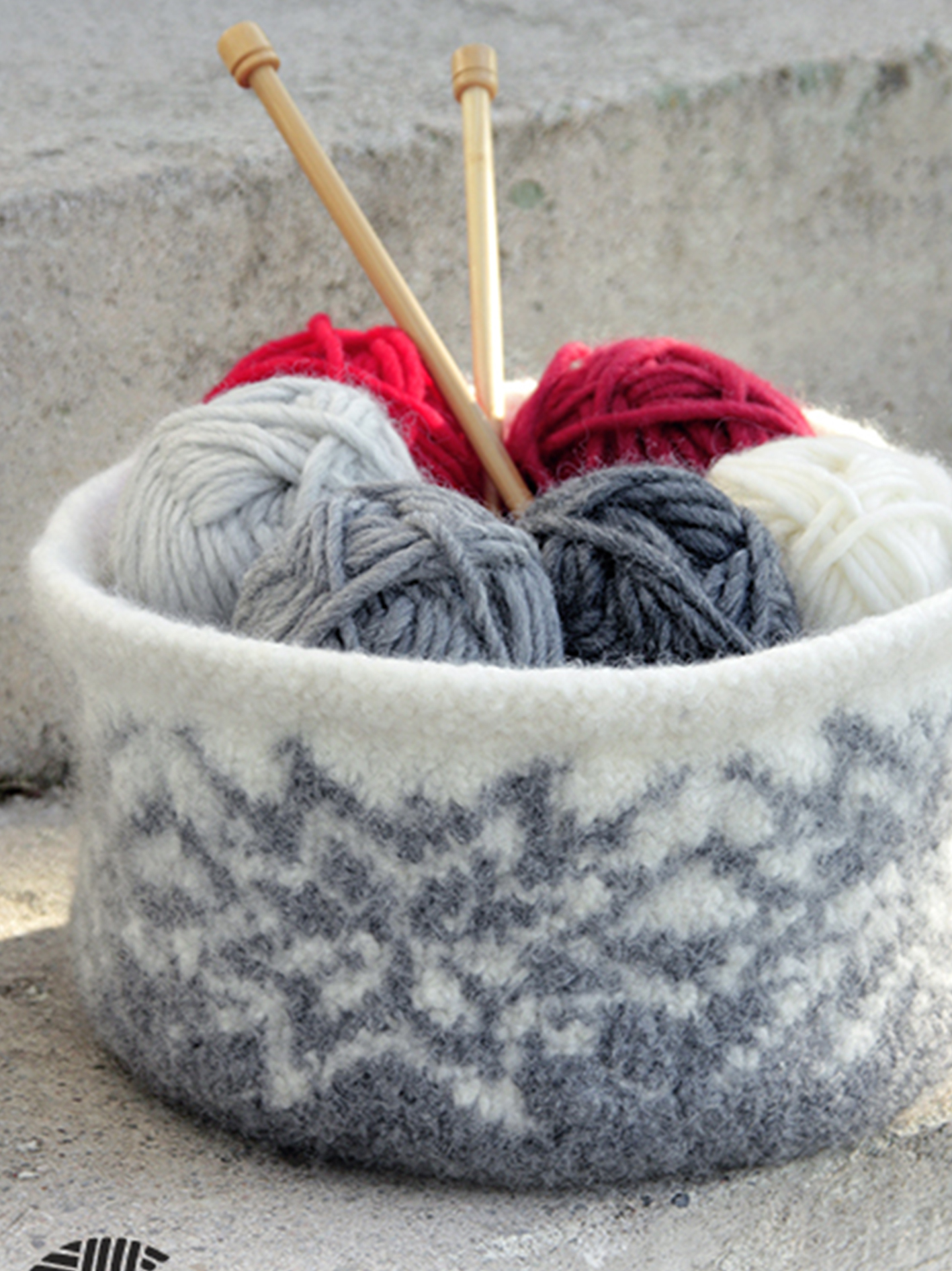 Measurements after felting: Diameter: approx. 23 cm / 9” Height: approx. 14 cm / 5½”