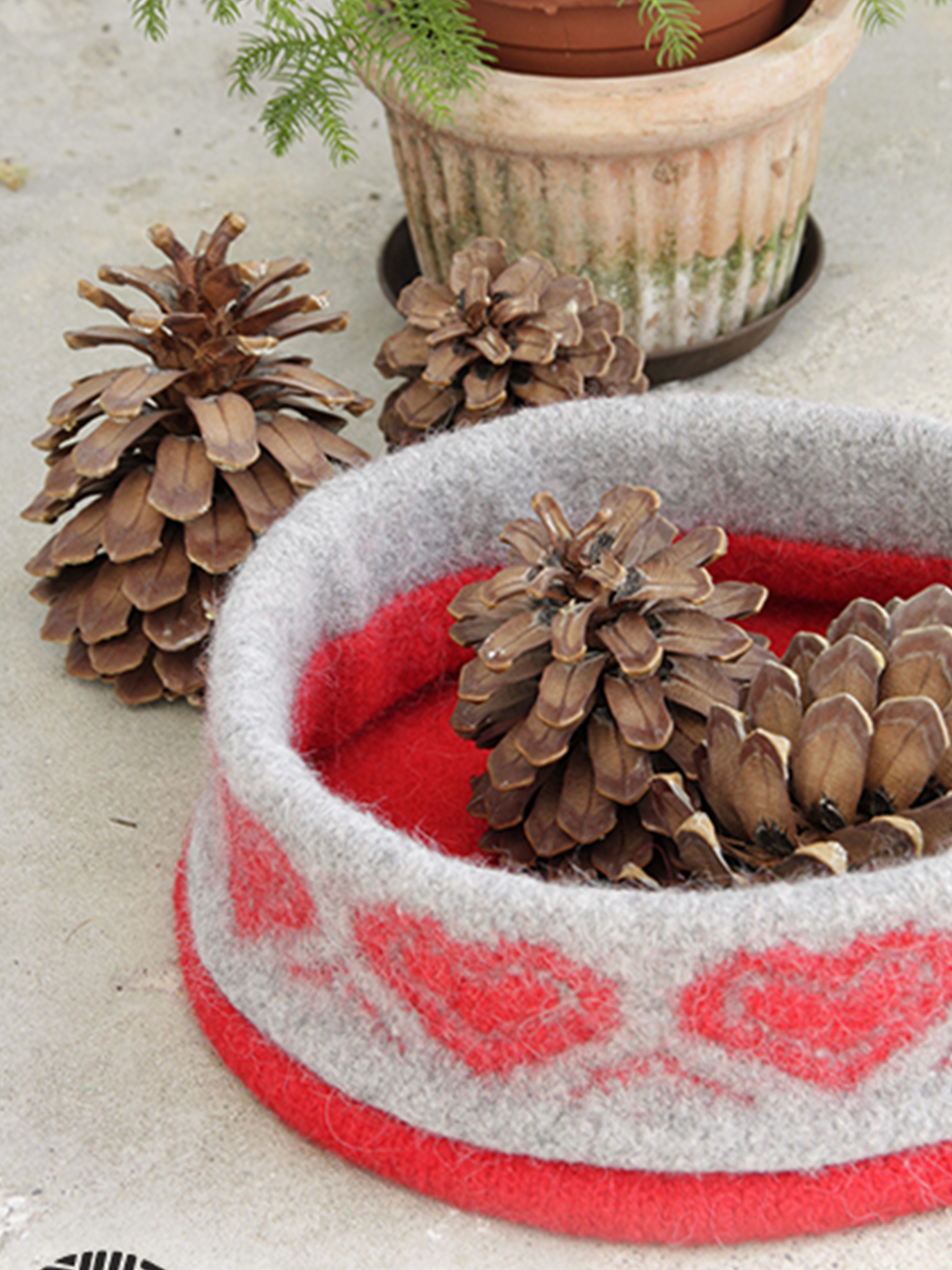 Measurements before felting: Diameter: approx. 27-33-36 cm / 10½”-13″-14 1/4″‘ Height when folded: approx. 16 cm / 6 1/4” in all sizes.