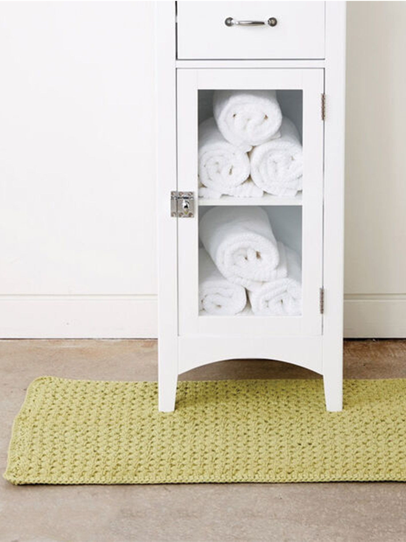 This project is where you fall in love with the bubble stitch. All you need is 2 balls of soft and chunky, Bernat Maker Home Dec to finish this one in no time. It’s such a useful and beautiful mat in any color, your feet and your bathroom will both love it.