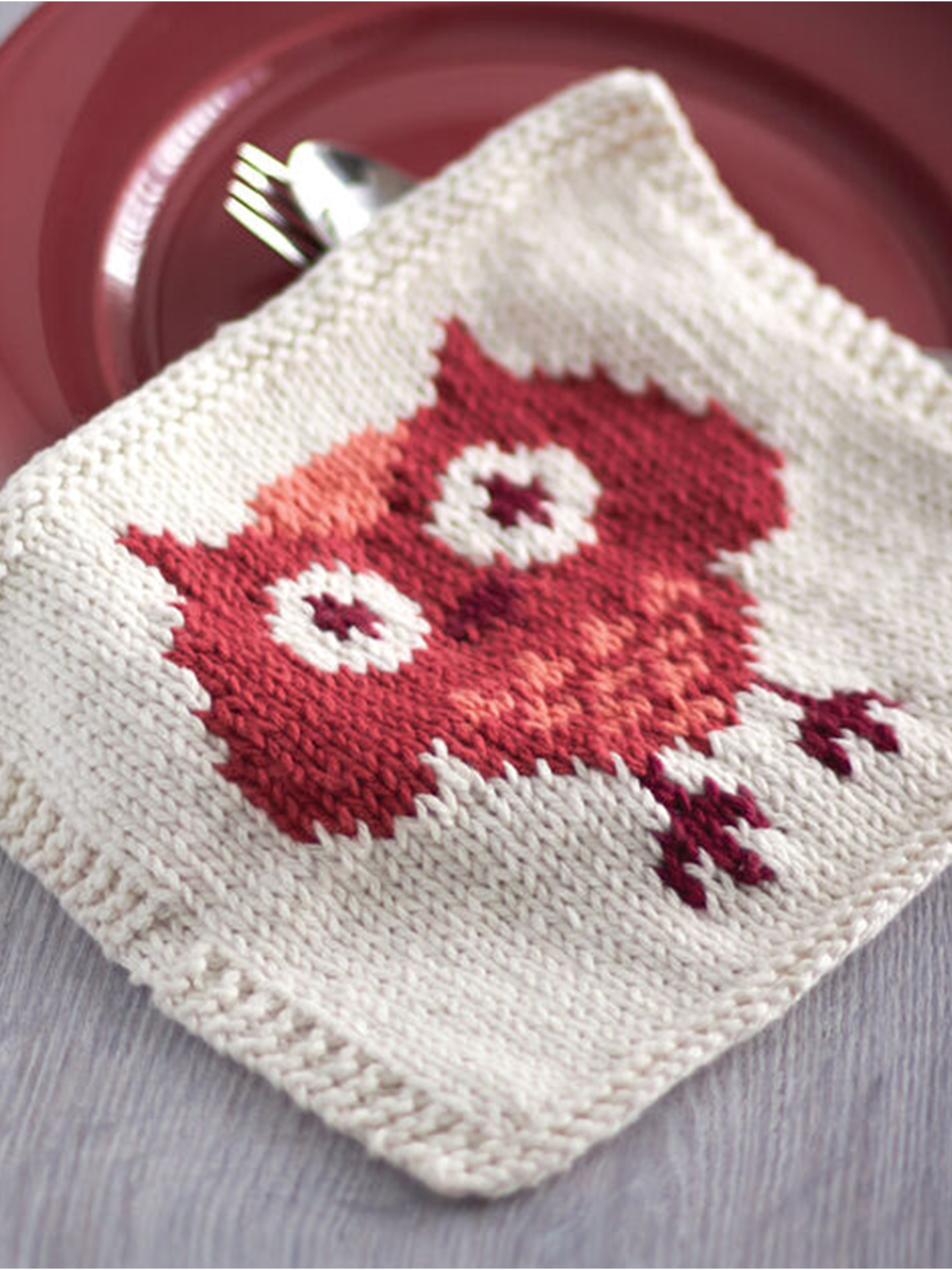 There’s someone cute watching you in the kitchen! Craft in 100% cotton Lily Sugar’n Cream to complete a durable dishcloth as shown, or use different colors to turn out a whole cast of hard working characters. No matter the look, this project is a hoot, so why not work on it with a fellow knitter?