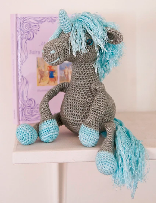 You will need 1 ball for 2 balls of Gray Vinnis Colors Serina and Light Aqua and a pair of 9mm safety eyes for the unicorn.